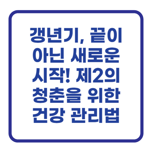 - 긍정적인 마음가짐: 갱년기를 '늙어가는 과정'이 아닌 '새로운 나를 만나는 지혜의 시간'으로 받아들이는 자세가 중요해요.