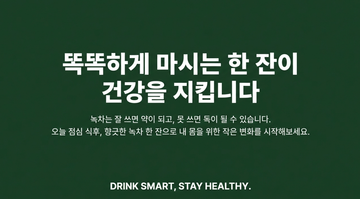 물론 개인차는 있겠지만, '타이밍'만 잘 맞추면 녹차는 최고의 건강 음료가 될 수 있다는 걸 증명한 셈이죠!