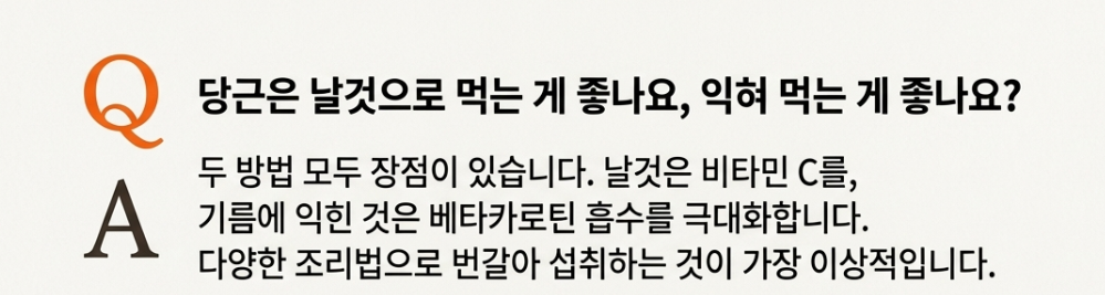 Q1: 당근은 날것으로 먹는 게 좋나요, 익혀 먹는 게 좋나요?