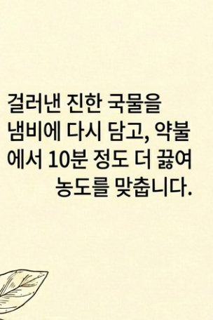 - 한 번 더 끓이기: 걸러낸 진한 국물을 냄비에 담고 약불에서 10분 정도 더 끓여주면 완성!