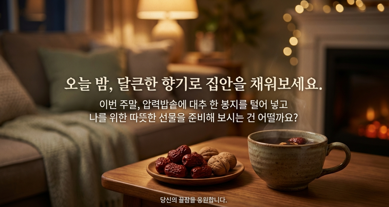 요즘 자려고 누워도 잠이 잘 안 오고, 손발이 차가워서 고생하시는 분들 계신가요? 저도 작년 겨울에 불면증 때문에 정말 고생했거든요. 😭 따뜻한 우유도 마셔보고 좋다는 건 다 해봤는데, 결국 저를 구원해 준 건 할머니가 끓여주시던 진한 대추차 한 잔이었어요.