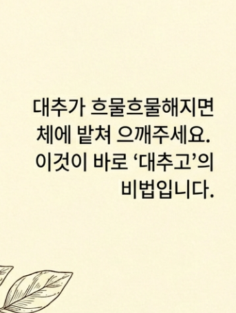 오늘은 집에서도 전문점보다 더 맛있게 대추차 끓이는 법을 알아봤어요. 이번 주말엔 압력밥솥에 대추 한 봉지 털어 넣고 온 집안에 달큰한 향기를 채워보시는 건 어떨까요? 혹시 더 궁금한 점이나 여러분만의 비법이 있다면 댓글로 알려주세요~ 같이 공유해요! 😊