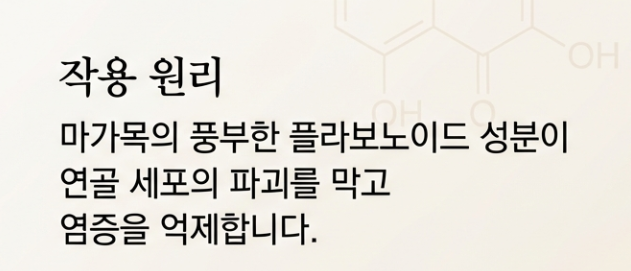 마가목의 플라보노이드 성분은 연골 세포의 파괴를 막고 염증을 억제하는 데 탁월합니다. 특히 무릎 관절염으로 고생하시는 어르신들에게 인기가 많은 이유죠.