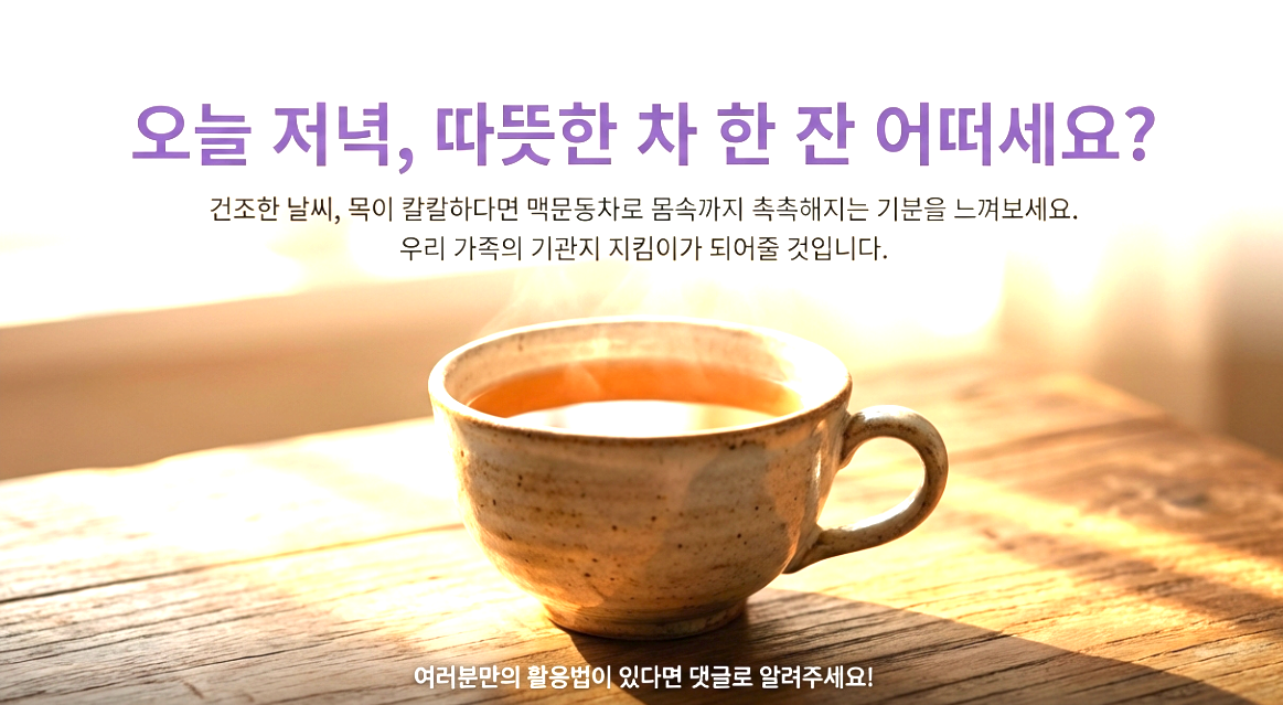 환절기만 되면 목이 칼칼하고 마른 기침 때문에 밤잠 설치신 적, 다들 한 번쯤 있으시죠? 저도 최근에 에어컨과 난방기를 오가다 보니 목이 건조해서 정말 고생했거든요. 물을 아무리 마셔도 해결되지 않는 그 답답함, 정말 괴롭더라고요. 😭