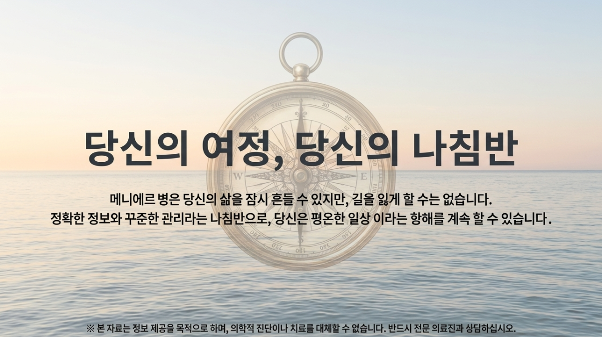 메니에르병은 일상에 많은 제약을 줄 수 있지만, 현명하게 대처하면 충분히 극복할 수 있습니다. 저는 다음 팁들이 정말 많은 도움이 되었어요.
