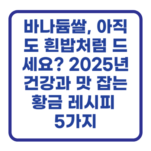 🍳 평범한 밥은 그만! 바나듐쌀 이색 레시피 BEST 5