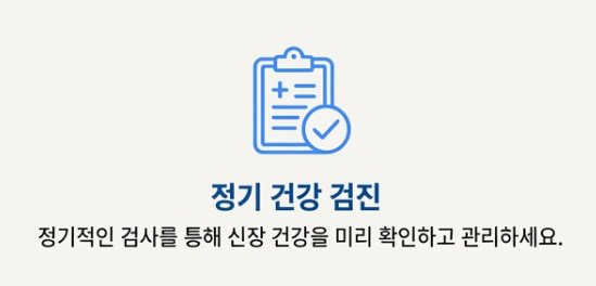 - 정기적인 건강 검진: 특히 위험 요소를 가진 분들은 정기적인 검사를 통해 신장 건강을 확인하는 것이 좋습니다.