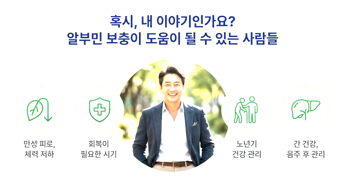 사실 건강한 사람이라면 간에서 알부민을 충분히 만들어내기 때문에 굳이 영양제로 챙겨 먹을 필요는 없어요. 하지만 나이가 들거나 특정 상황에서는 체내 합성 능력이 떨어질 수 있답니다. 주로 어떤 분들에게 추천되는지 정리해 봤어요.