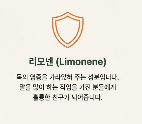게다가 유자의 '리모넨' 성분은 목의 염증을 가라앉혀 주니, 말을 많이 하는 직업을 가진 분들에게도 정말 좋은 친구가 되어줄 거예요.