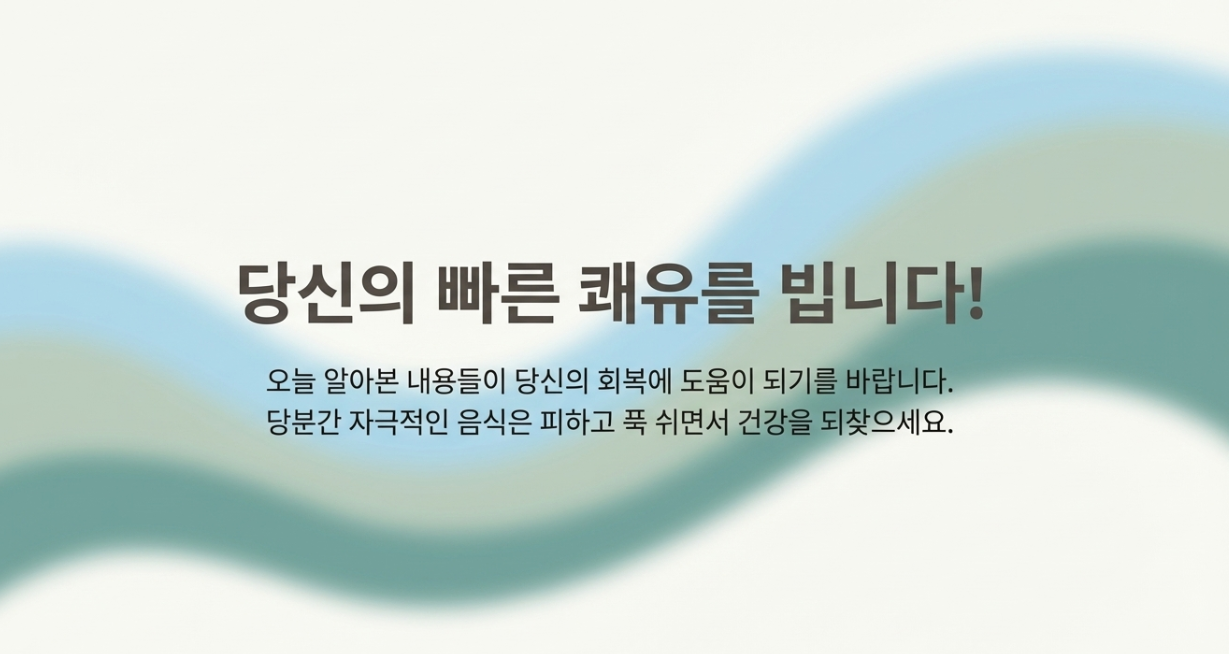 건강이 최고라는 말, 아플 때마다 뼈저리게 느끼죠? 당분간은 자극적인 음식 피하시고 푹 쉬시길 바라요. 여러분의 쾌유를 빕니다! 궁금한 점이나 여러분만의 장염 극복 꿀팁이 있다면 댓글로 알려주세요~ 😊