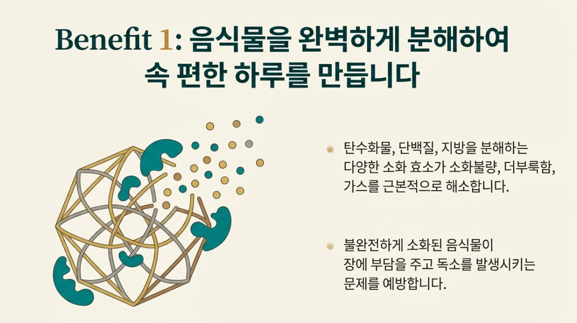 - ✅ 소화 개선: 탄수화물, 단백질, 지방 분해를 도와 속 편안함을 선사합니다.