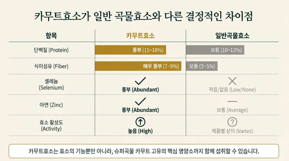 Q3: 카무트효소와 일반 효소 제품의 차이점은 무엇인가요?
