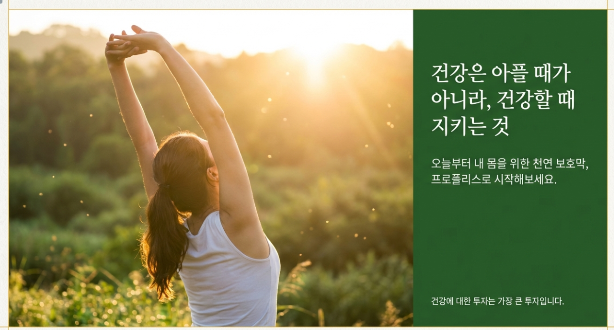 지금까지 천연 항생제로 불리는 프로폴리스의 효능과 똑똑한 섭취 방법에 대해 알아봤습니다. 건강은 아플 때 챙기는 게 아니라, 건강할 때 지키는 것이 가장 큰 투자라는 사실, 잊지 마세요!