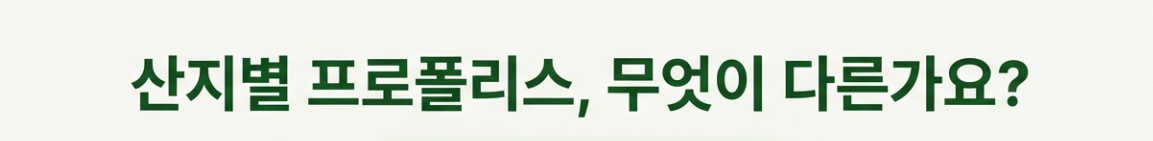 산지별 프로폴리스 특징 비교