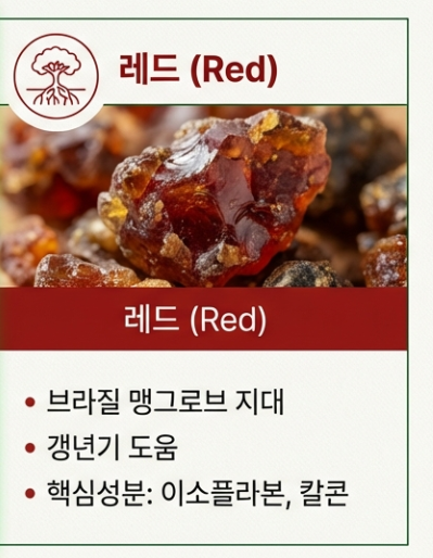 | 레드 (희귀) | 브라질 맹그로브 지대, 갱년기에 도움 | 이소플라본, 칼콘 |