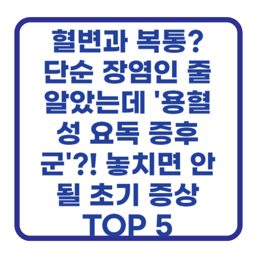 - 2단계 (급성기): 1~2일 뒤부터는 피가 섞인 '혈변'을 보게 돼요. 이때부터 상황이 심각해지는 거죠.