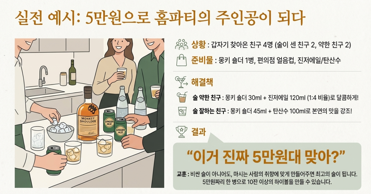 - 교훈: 비싼 술이 아니더라도, 취향에 맞게 타주면 최고의 파티 술이 된다!