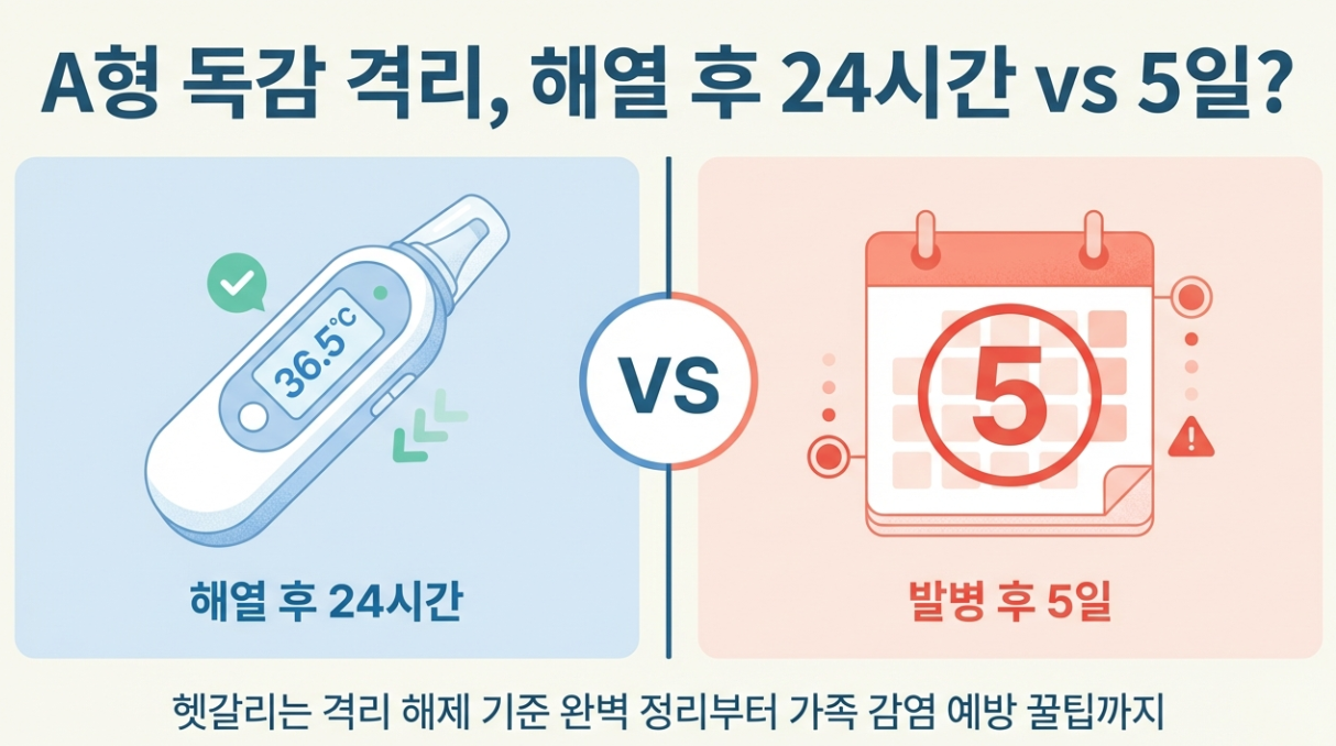 A형 독감(인플루엔자)은 법정 감염병이지만, 코로나19처럼 법적 의무 격리는 아닙니다. 하지만 전염력이 매우 강하기 때문에 '권고' 사항을 반드시 지켜야 하는데요. 학교나 직장에 복귀하기 위한 핵심 기준은 딱 두 가지로 요약됩니다.
